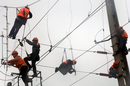 無(wú)論是高溫天,還是下雨天,鐵路工人在高空安全帶的保護(hù)下,都能心無(wú)旁騖、安全高效的完成電網(wǎng)維修工作。