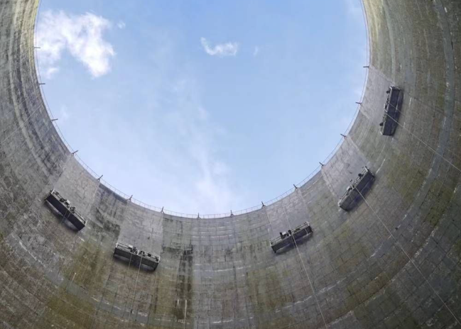 發(fā)電廠的冷卻塔是巨大的鋼結(jié)構(gòu),其主要功能是通過(guò)蒸發(fā)和對(duì)流來(lái)冷卻發(fā)電機(jī)組產(chǎn)生的熱水,從而保障發(fā)電效率并減少熱污染。冷卻塔內(nèi)部長(zhǎng)時(shí)間受到水汽和溫度變化的影響,內(nèi)壁可能會(huì)受損,影響其結(jié)構(gòu)穩(wěn)定性和冷卻效果,因此需要定期進(jìn)行加固和維護(hù)。
